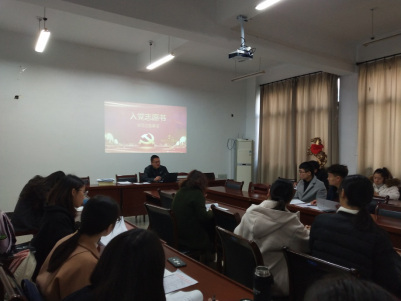11月22日中午,H漫 在管工会议室进行预填入党志愿书培训,党课班主任邢维迢主讲,学院16名发展对象与会。