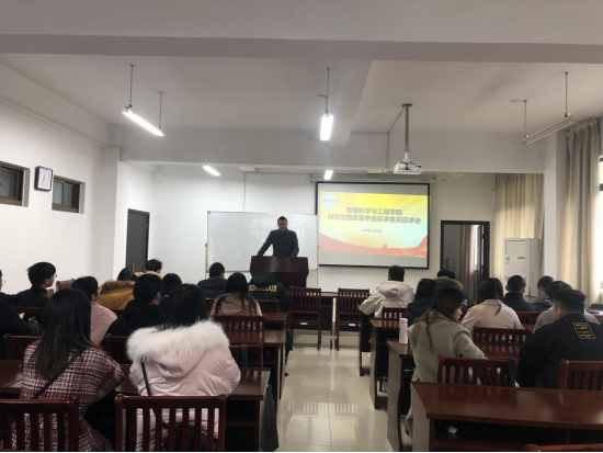在汇文楼A308召开研究生国家奖学金评选工作意见征求座谈会。学院全体研究生学生干部、党员、研究生代表参加会议,研究生辅导员邢维迢主持。