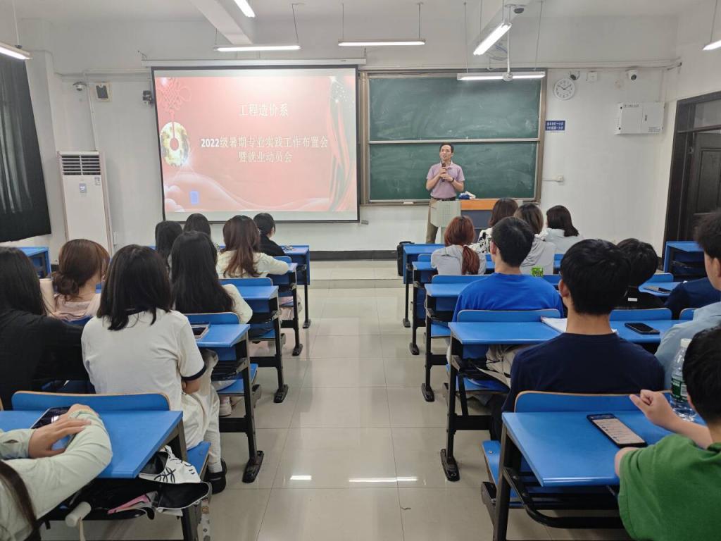 为助力学子明晰职业规划方向,掌握考研实习要点,6月6日,H漫 工程造价专业在教D208教室举办考研实习动员会。会议由2022级辅导员赵玉婷主持,工程造价系系主任王治国,工程造价系教师白娟、李平、李艳及专业2022级全体学生参会。