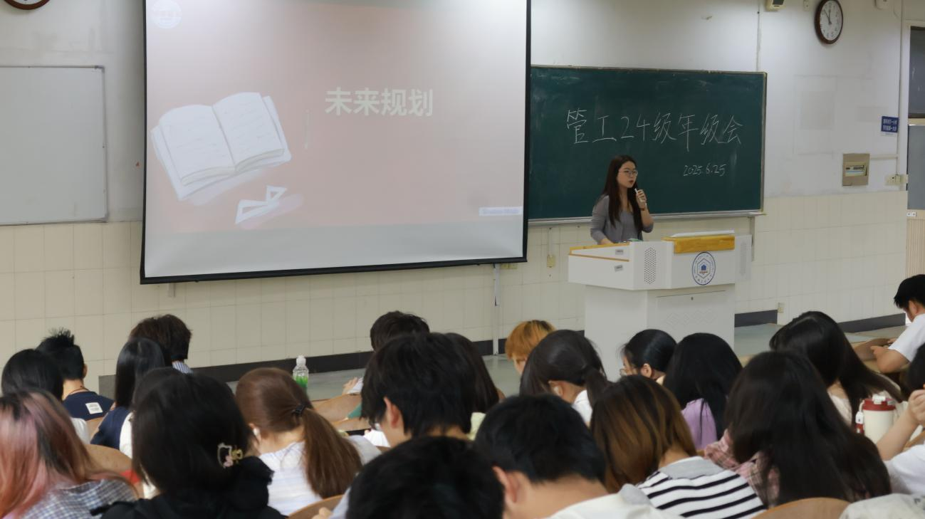 本次年级会既是一次严肃的考风考纪教育会,也是一场生动的暑期安全指导会。相信2024级全体学生定能将老师的教导内化于心、外化于行,在考场上交出诚信答卷,在假期里筑牢安全防线。