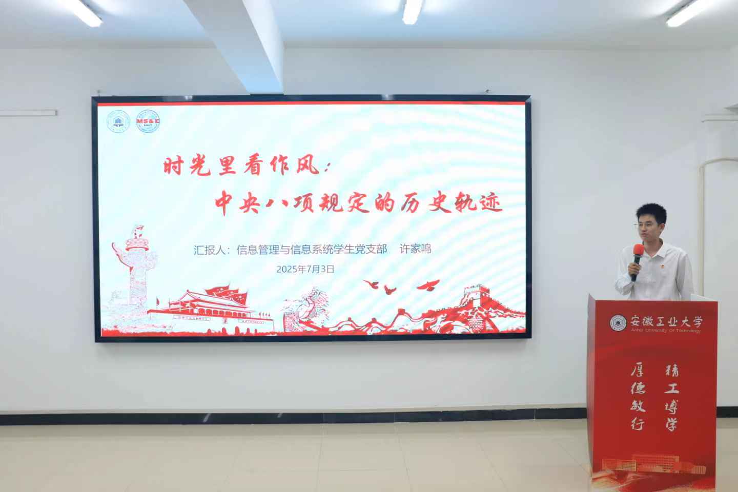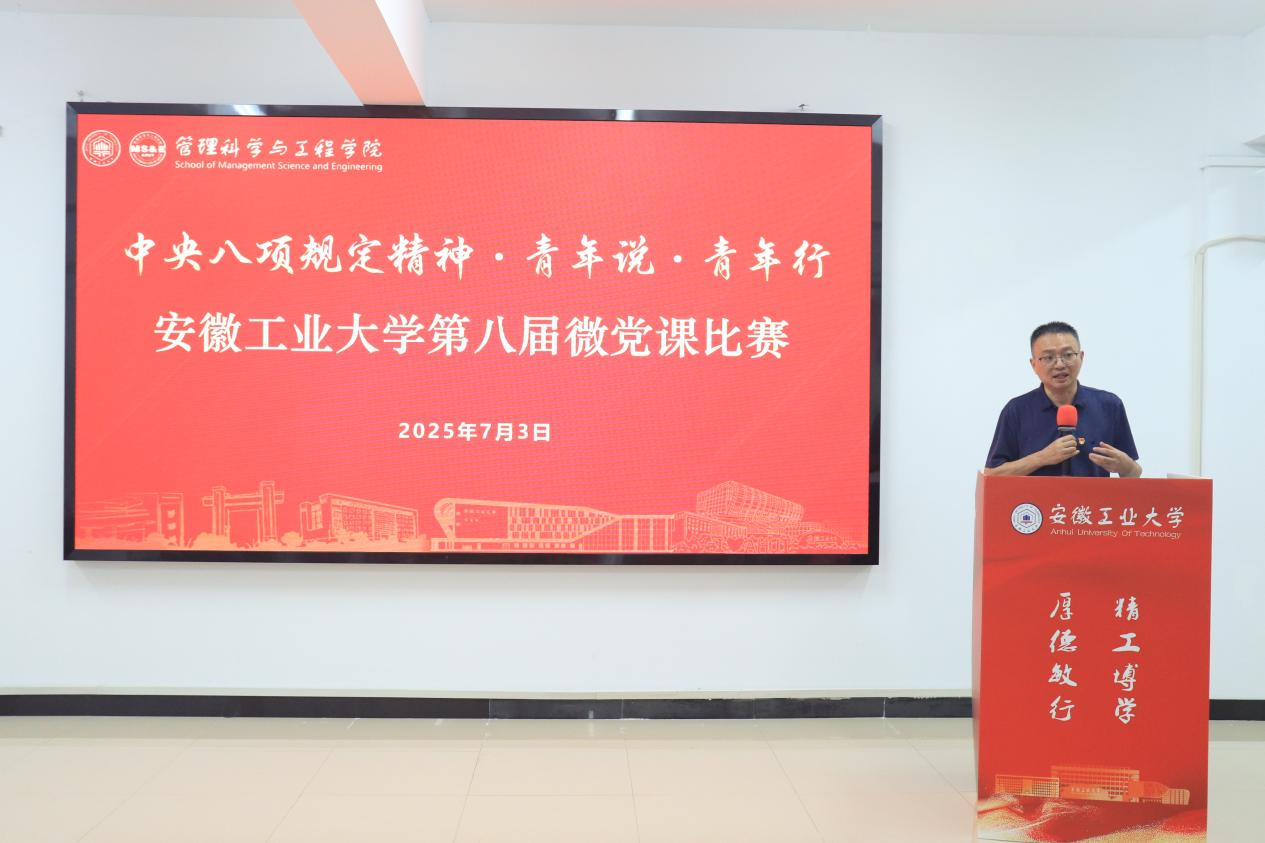 比赛在全体参赛队员沉浸式体验热播剧《长安的荔枝》剧本杀中展开,参赛队员通过角色扮演,亲历唐朝“荔枝转运使”完成鲜荔枝跨域运输的艰巨任务,并结合体验深入思考领会“人民至上”价值理念与中央八项规定精神的深刻内涵。比赛中,各支部推荐的7支参赛队伍围绕主题,结合“六尺巷”的礼让佳话、彭德怀的“一碗擂茶”、左权的半块肥皂以及习近平总书记的“一张简朴菜单”等生动案例,通过视频、歌曲、互动等形式,生动具体地剖析了中央八项规定精神的历史底蕴和时代价值,同时,结合日常学习生活实际,探讨青年践行中央八项规定精神的具体路径,为深化作风建设提供了青年视角的实践思考。王军在赛后总结中强调,全体师生党员要以此次活动为契机,持续深入学习贯彻中央八项规定精神,切实将廉洁意识内化于心、外化于行,共同营造风清气正的校园环境。本次比赛中《如何写好学术诚信“初心卷”》获特等奖;《半块肥皂映照清廉丰碑》等2个作品获一等奖;《徽风皖韵中的清廉华章》等4个作品获二等奖;《锤炼好作风,铸就硬担当》等7个作品获三等奖。