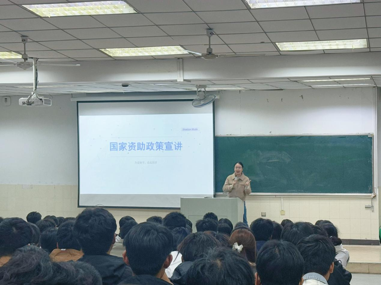 为助力学子无忧求学,H漫 于10月22日在秀山校区阶教201举办“国家资助政策宣讲会”,由新生辅导员任静主讲,全体2025级新生参加。