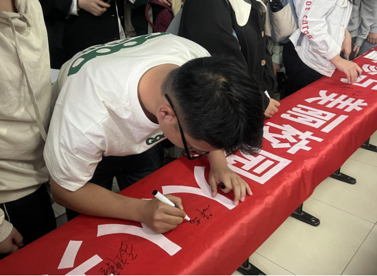 活动期间,各团支部开展形式多样的主题班会,同学们围绕“校园文明风尚创建我能做什么?”“健康卫生习惯如何培养”等内容进行分享与讨论,深化对文明风尚内涵的理解。同时,部分班级举办“文明风尚,健康卫生”宣讲会和横幅绘签宣传活动。宣讲会上,主讲人分享实用卫生知识和健康“小贴士”,结合身边人、身边事的具体案例倡议同学们文明从我做起,健康生活在点滴中养成。横幅绘签宣传活动中,同学们纷纷拿起画笔,在横幅上签下自己的名字,表达对文明行为的支持和倡导,展示了管工学子积极向上的精神风貌。