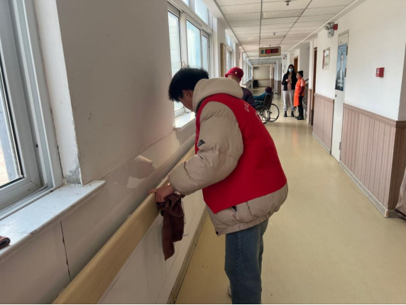 活动中,敬老院院长向志愿者们介绍了敬老院的基本情况、外来人员探望制度等。志愿者们身着红色小马甲帮助工作人员共同打扫敬老院内卫生,擦拭墙壁、窗户,清理花坛垃圾,整理老人们的房间。在清扫的过程中,志愿者们与老人们互动交流,询问需求,倾听他们的故事,传递着温暖与关爱。