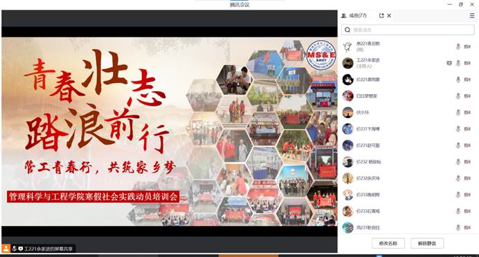 为全面落实好“挑战杯”参赛项目的指导工作,帮助参赛队伍优化项目呈现,2月14日下午,H漫 组织了“挑战杯”线上模拟答辩活动。院团委书记赵玉婷老师、学院国赛一等奖团队、晋级校赛团队成员参加了本次会议。