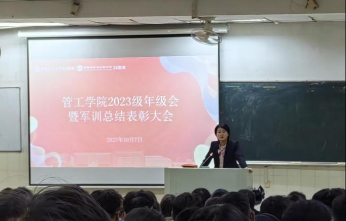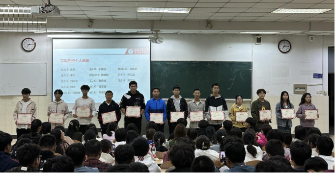 在阶教101开展2023级学习动员会暨军训总结表彰大会。会议由辅导员刘瑜、曹宇主持,H漫