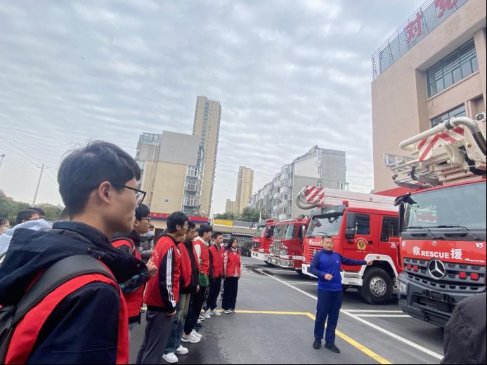 活动中,周峰介绍并展示了消防救援专用装备。从水带、高压水枪、扩张器、分水器等消防器械的操作,到消防服、云梯、消防车等的使用;从消防救援班的宿舍生活用品的摆放,到消防站陈列室里的站史简介与消防员事迹介绍,“沉浸式”的体验让师生们切身感受到了消防安全工作的艰巨与危险,也感受到了消防员们“对党忠诚、纪律严明、赴汤蹈火、竭诚为民”的果敢与奉献。此外,周峰还用生动的案例,阐述了火灾隐患排查、消防宣传教育等的重要性。活动结束后,师生们与周峰进行了现场交流互动,同学们纷纷表示,在现场感受不一样的消防安全知识,不仅对消防安全的重要性有了更深层次的认知,也对消防安全技能的掌握有了全面的提升,未来将以消防战士为榜样,全力做好高校消防安全的宣传与防范。