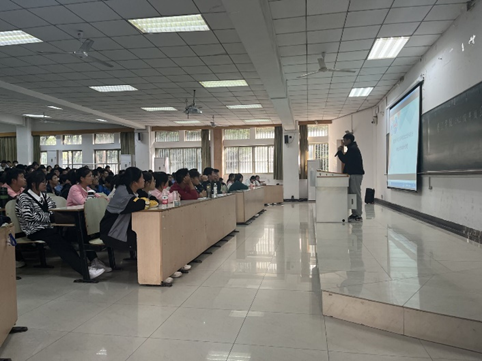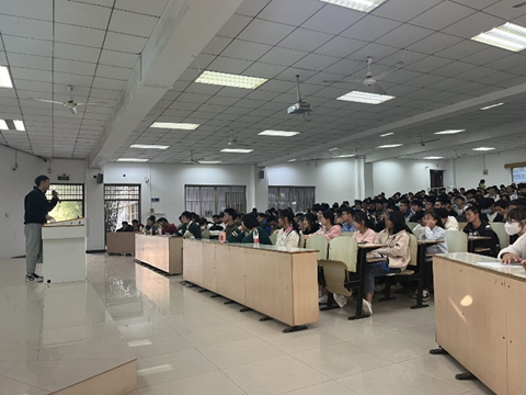 2022级于10月27日下午在教三南203召开文明安全宿舍创建年级会,会议由年级辅导员焦朋庆主讲,22级辅导员赵玉婷出席,全体22级学生参加。