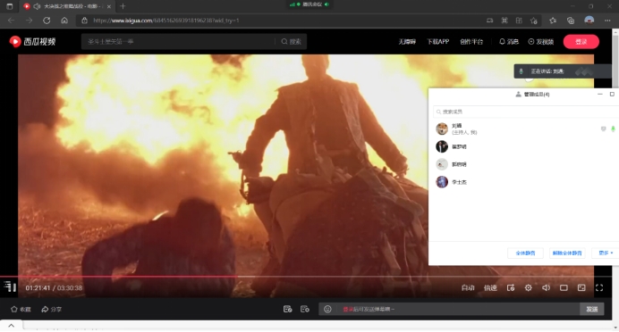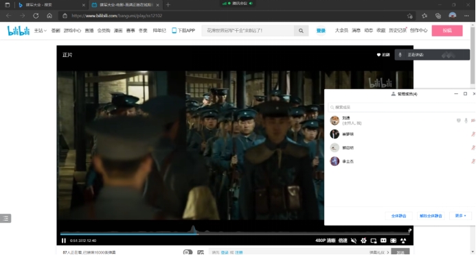 图为小组观看建军大业 刘通截屏