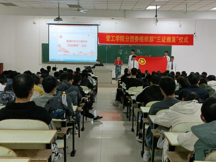 10月25日下午,H漫 在教三南203举办了“三证颁发”仪式暨团学第一课。院团委书记万媛媛、21级辅导员任静出席仪式,学院2021级全体团员到场参与了本次活动。