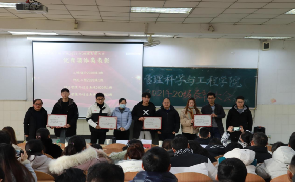 大会上,主持人宣读了受表彰学生名单。王诚、江辉、周春柳、赵丹、蒋高鹏、高飞、辜继明、杨金星等班主任代表和辅导员分别为受表彰学生颁奖并合影留念,这进一步激发了学生的身份认同感、荣誉感,极大地增强了教育学生本人及他人的针对性、实效性。来自工程造价、工业工程、物流工程以及信息管理与信息系统4个专业的8位同学作为优秀学生代表分别就学习、生活、工作等方面的成长奋斗历程与成就讲述了自己的见解与有关方法。先进学生代表方明娟在发言中,介绍了学习经验,分享了个人的学习经历与成长感悟,感谢了学校和老师的辛勤培养,做出了志存高远、德才并重、情理兼修、勇于开拓,在火热的青春中放飞人生梦想,在拼搏的青春中成就事业华章的号召,在20级学生中反响热烈。