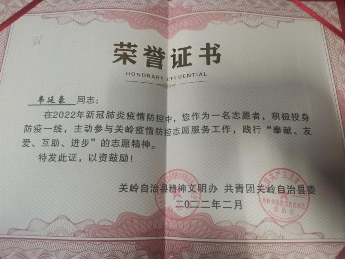 图为志愿者韦廷豪所得证书韦廷豪摄