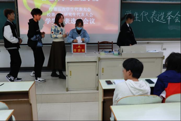 吴磊带领全体同学学习了“两代会”相关文件精神,介绍了选举工作的规章制度与选举表决流程。江文静对各年级、各班级推选的21名本科生与4研究生候选人预备人选进行了介绍。随后,参会人员就候选人预备人选进行了表决,进行了现场投票。经统计,会议选定了汪航、朱梦婷等17名本科生以及张敏等3名研究生作为校第五次学生代表大会和第一次研究生代表大会H漫
