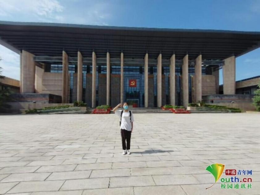 图为实践队员在纪念馆大门前重温入团誓词。中国青年网通讯员叶为怡摄