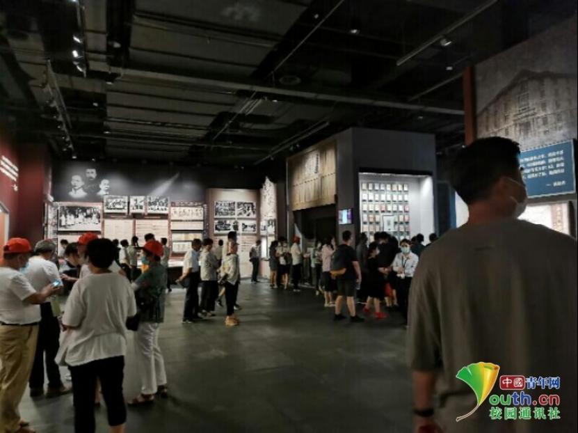 实践队员们沿着历史发展的时间脉络去感受先辈们的艰苦奋斗历程。来到位于展厅二楼“救亡图存”部分,实践队员们一步一步往前走,一刻不停地盯着那些展览的图文——一份又一份不平等条约的签订、西方资本主义的肆意扩展,中国进入内忧外患的抗争和求索之中。尽管这些屈辱的历史早在课本中学过,但在纪念馆内重新浏览一遍,这种愤愤不平之情似乎格外的浓烈。顺着展线继续前行,实践队员们看到的是“开天辟地”部分。狭长过道中,相关图片和实物展陈铺展开,给人以在历史长河中感知革命先行者伟大创举的深刻印象,其中展示了中国共产党早期组织58位共产党员的光辉事迹,一个名字的背后便是一段英雄的传奇。为了国家,为了人民他们抛头颅,洒热血,他们用自己的鲜血染红了党旗。他们的一生惊心动魄,没有他们就没有如今的盛世中华。驻足细看陈列的历史文物、文献、书籍和照片,回顾着老一辈革命家的丰功伟绩,重温中国共产党波澜壮阔的伟大历程,用心感悟历史,真切体会共产党人为争取民族解放、国家独立而艰辛奋斗的革命战争史和为取得民族复兴、国家富强而坚持不懈的建设奋斗史。在参观过程中一些老党员亲切地向实践队员们讲述属于他们的红色故事,从而了解到一些纪念馆内没有的革命细节和鲜为人知的革命故事。