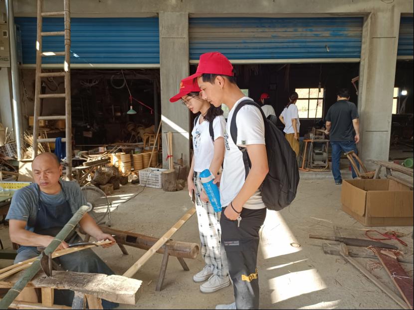 “传承非遗、助力乡村振兴”实践队来到了广德市东亭乡高峰村调研。实践队分别对明德竹木工艺制品有限公司与广德唐诗竹木艺术品编织厂两个非遗文化企业进行了实地考察学习。