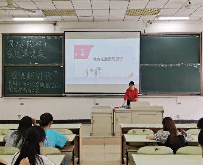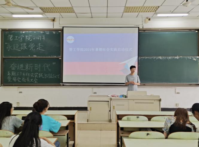 2021年暑期社会实践活动启动仪式在教三南201举行,院党委副书记王功成、院团委书记万媛媛老师出席,学院2021年暑期社会实践队员到场参加。