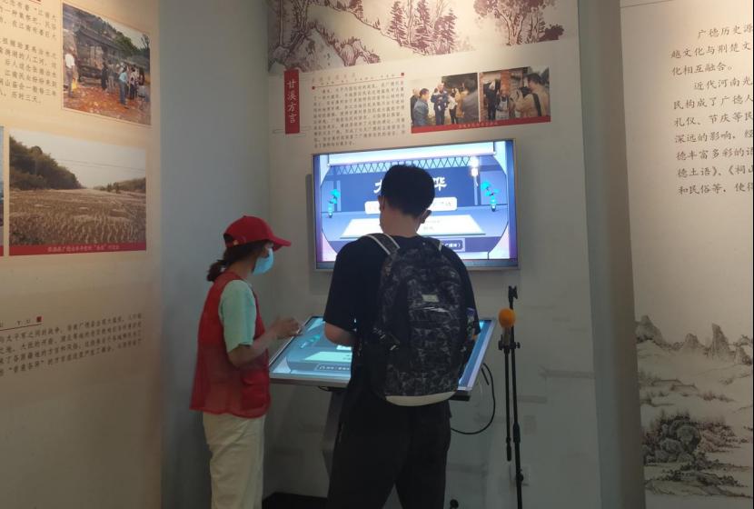 图为工作人员为实践队员讲解广德西坞马灯文化。