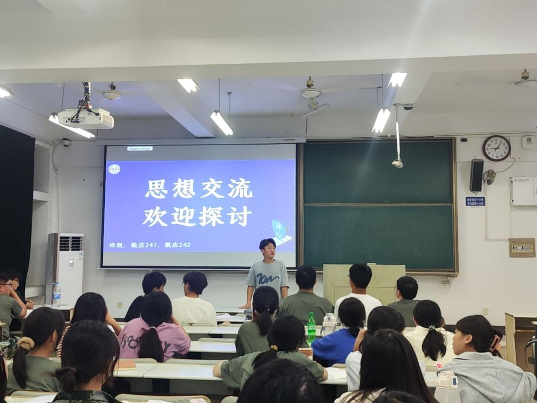 本次班会以“多一次安全教育,多一份安全保障”为主题。班会伊始,班级负责班助们首先向新生强调了军训期间的自身安全以及注意事项,并详细讲解了军训安全知识。从如何预防中暑、避免运动损伤,到正确应对突发状况等方面,为新生们即将开始的军训生活提供了全面而实用的指导。