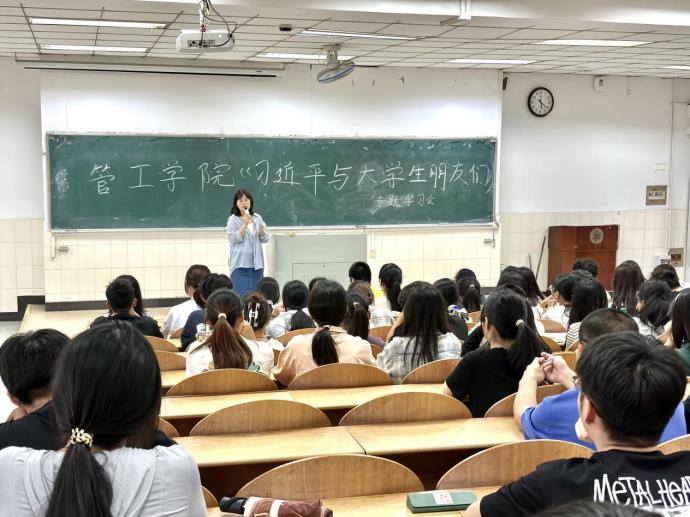 会议上,赵玉婷首先带领参会成员共同回顾了习近平总书记的知青岁月,并鼓励同学们要肩负历史使命,坚定前进信心,立大志、明大德、成大才、担大任,努力成为堪当民族复兴重任的时代新人。随后,赵玉婷围绕“作为青年学生干部,我们能做什么?”这一议题,从青年学生干部应具备的能力、角色定位思考以及实际工作中的技巧等三个方面进行了深入剖析和详细阐述。会议最后,赵玉婷鼓励青年学生们要扣好人生的第一粒扣子,坚定信念、勤奋学习、脚踏实地、勇于克服困难。她勉励大家学以致用、务实进取,努力成为业务骨干和青年楷模,为祖国的繁荣富强贡献青春力量。