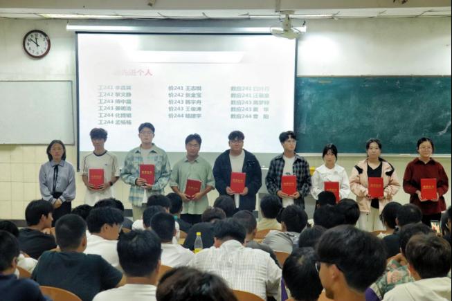 在阶教101召开学习动员暨军训总结表彰大会。会议由2024级新生辅导员李军慧主持,学院党委副书记、副院长、纪委书记赵颖、学院团委书记赵玉婷、2024级新生辅导员孙如梦以及全体2024级新生参与本次会议。
