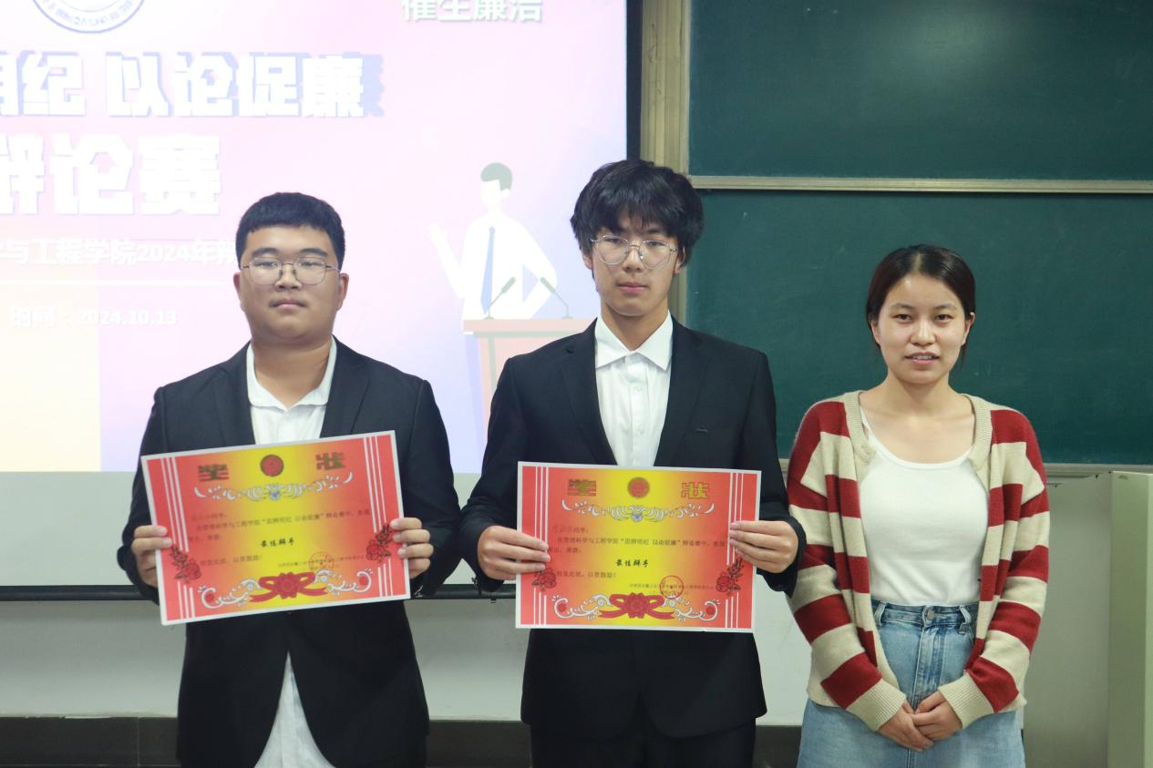 经过初赛与复赛的激烈角逐,两支辩论队伍脱颖而出,晋级决赛。决赛围绕“精神富足与物质富足哪方更能催生廉洁”的辩题展开。正反双方辩手紧扣辩题,巧妙结合当下时政热点,旁征博引,以扎实的论据、严密的逻辑展开激烈交锋。比赛经过立论、驳辩、盘问、自由辩论、总结陈词及现场提问等多个环节,最终正方“木叶飞舞”辩论队获冠军,反方“四政”辩论队获亚军;工程造价244班薛雨涵、工业工程244班李啟佳获最佳辩手称号;工程造价231班、大数据管理与应用243班、工程造价241班等八个班级获最佳组织奖。