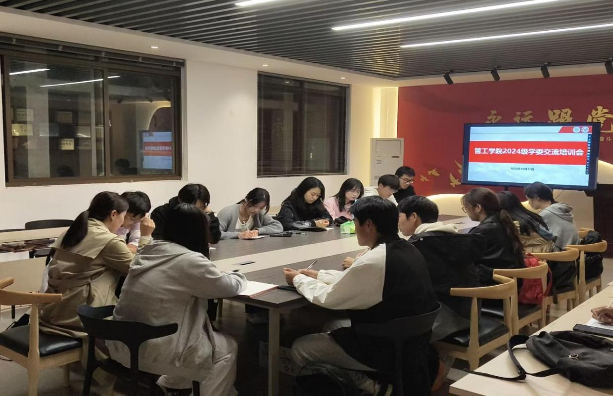在汇文楼A502组织开展2024级学委交流培训会。2024级辅导员李军慧、孙如梦及各班学习委员参与。
