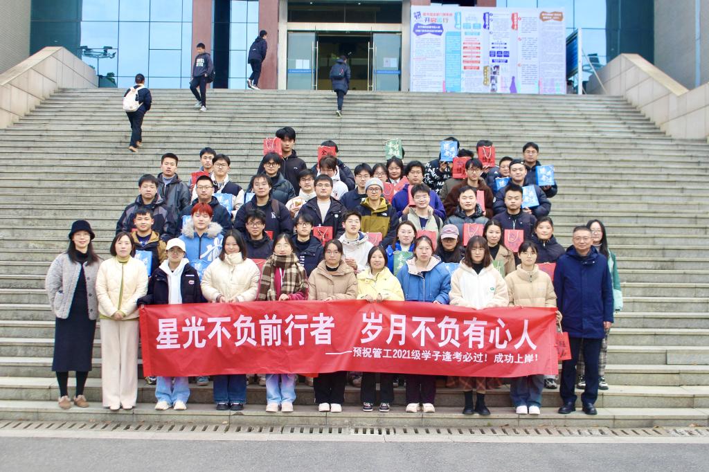 在秀山校区图书馆前开展了“温暖相伴,逐梦研途”考研慰问活动。学院党委书记王军,院党委副书记、纪委书记、副院长赵颖,毕业班辅导员任静、钱丹丹及2025届考研学生参加本次慰问活动。