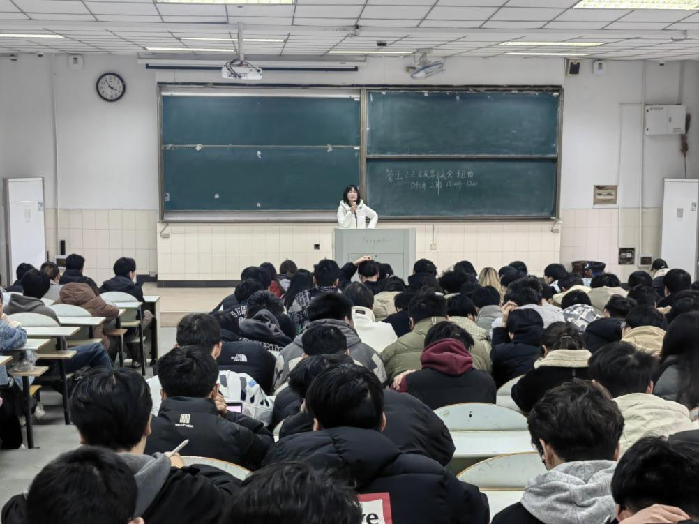 在阶教203召开主题为“回望成长,启航新程”的年级会,会议由辅导员赵玉婷、焦朋庆主持,2022级全体学生参与。