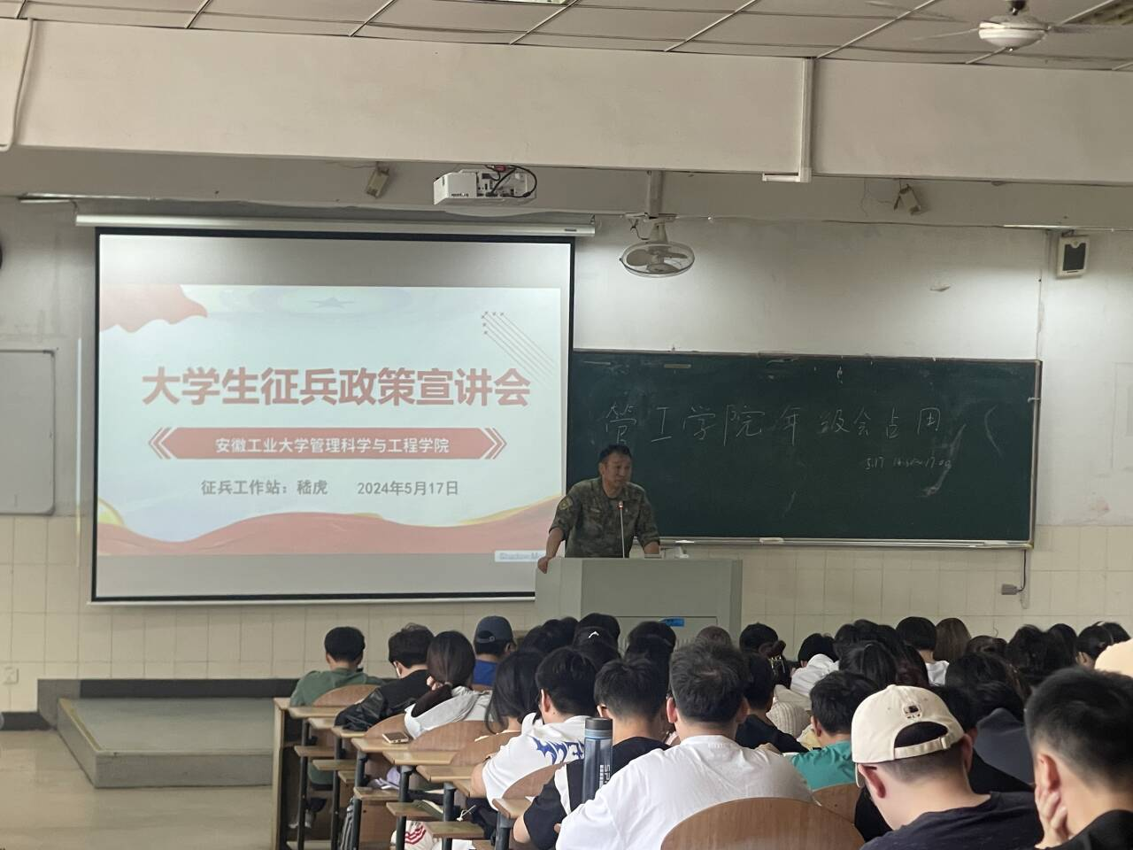 于阶教101召开2024届毕业生年级会暨2024年秋季征兵动员宣讲会。校征兵工作站嵇虎老师,H漫