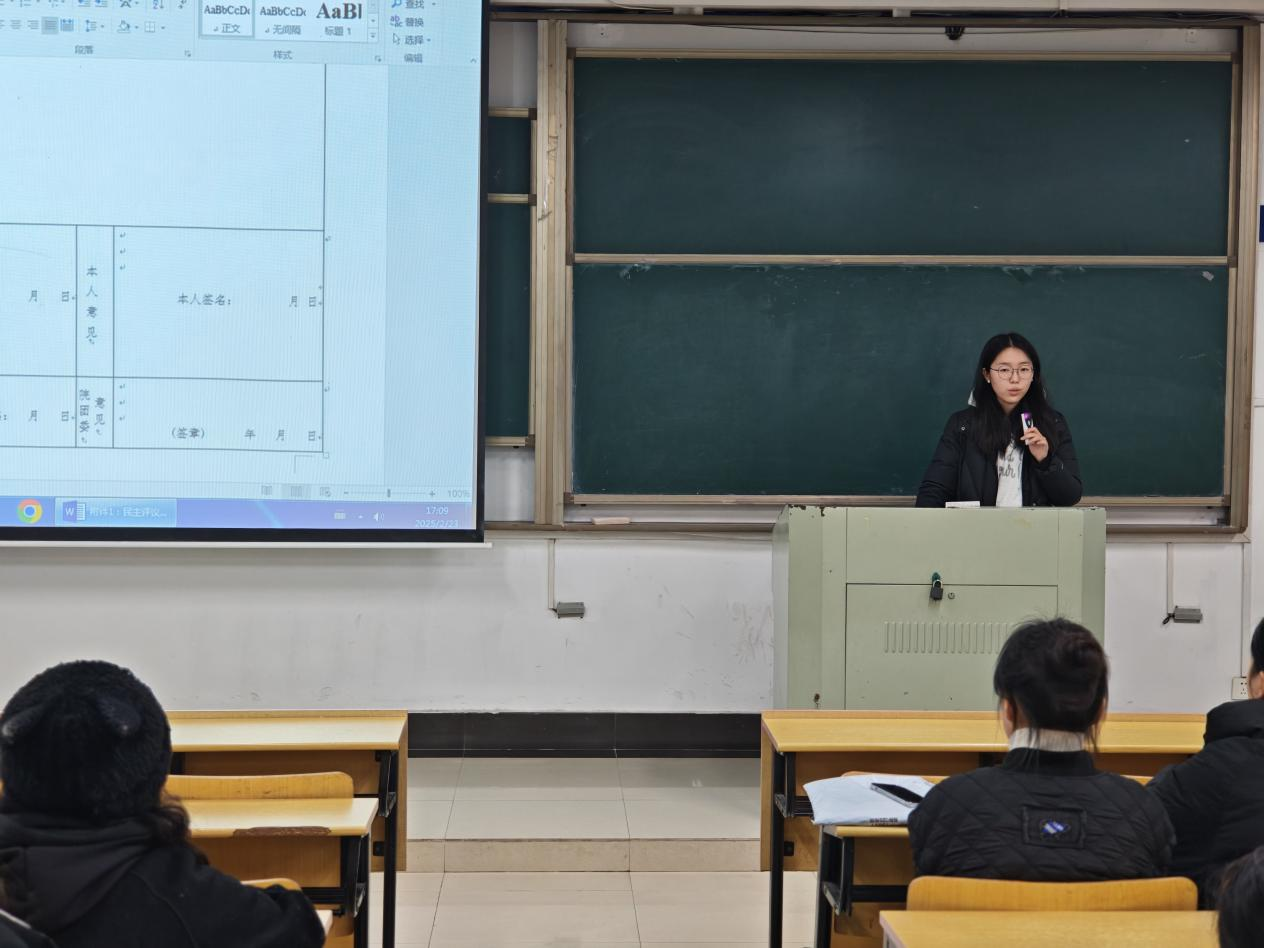 会上,赵玉婷就规范基层团组织建设提出三点工作要求:一是强化思想引领,要求各支部规范开展主题团日活动,组织好团课学习,切实发挥基层团组织育人功能;二是规范基础团务,要求各支部严格开展组织生活会和团员教育评议,规范填写团支部工作手册;三是深化“第二课堂”建设,在收集基层意见基础上优化活动形式,聚焦学生实际需求设计特色项目。随后,赵玉婷分年级就重点工作进行部署,她强调毕业班团支部要重点抓好“学社衔接”工作,确保团组织关系转接有序推进;低年级支部要锚定“十佳班级”“五四红旗团支部”创建目标,在学术科研、志愿服务等方面培育特色品牌。赵玉婷指出,各团支部要全面推进“8+”建设体系,重点围绕主题团日、社会实践、志愿服务等八个维度打造特色活动矩阵,构建具有学院特色的团建工作格局。