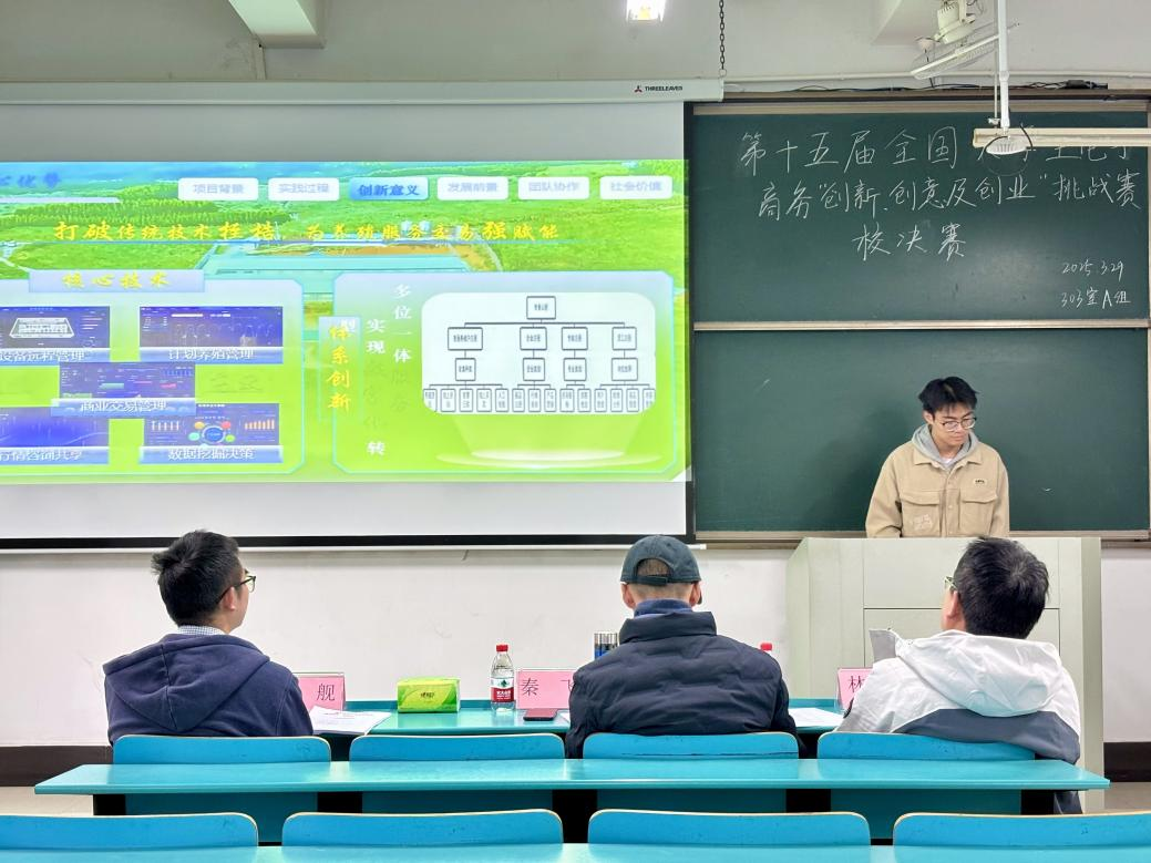 在教D301、教D302、教D303举办第十五届全国大学生电子商务“创新、创意及创业”挑战赛校赛决赛,全校共39支队伍进入决赛。信息管理与信息系统系、物流工程系、工业工程系、工程造价系等相关教师担任了本次大赛评委。