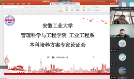 系主任张顺堂教授、天津工业大学经济与管理学院博士生导师刘亮教授,对工业工程专业培养方案进行线上论证。副院长张洪亮、系主任刘舰、系副主任周春柳、系主任助理李明明参加会议,本次线上会议由副院长张洪亮主持。