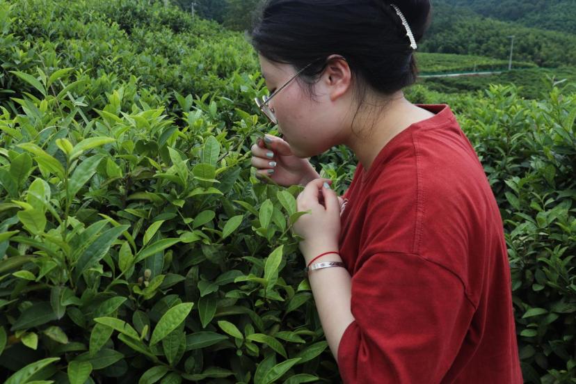 图为实践队员在细嗅茶香。中国青年网通讯员 曹杰 摄