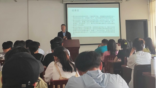 作题为“数字经济的内在逻辑”学术报告。报告由学院院长汪和平主持,副院长王付宇、部分教师及在校研究生聆听了报告。