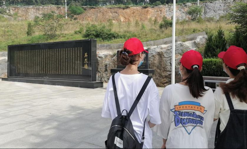 图为实践队成员瞻仰英烈墙,缅怀先辈。