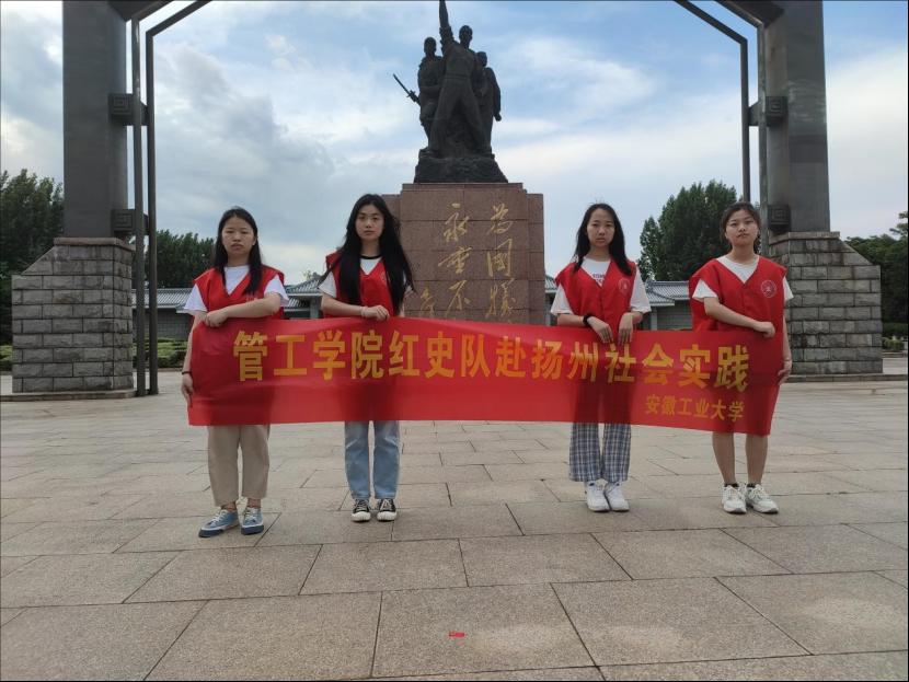 图为学院赴扬州党史学习实践团队在江苏省扬州市革命烈士陵园的烈士纪念碑前的合影。