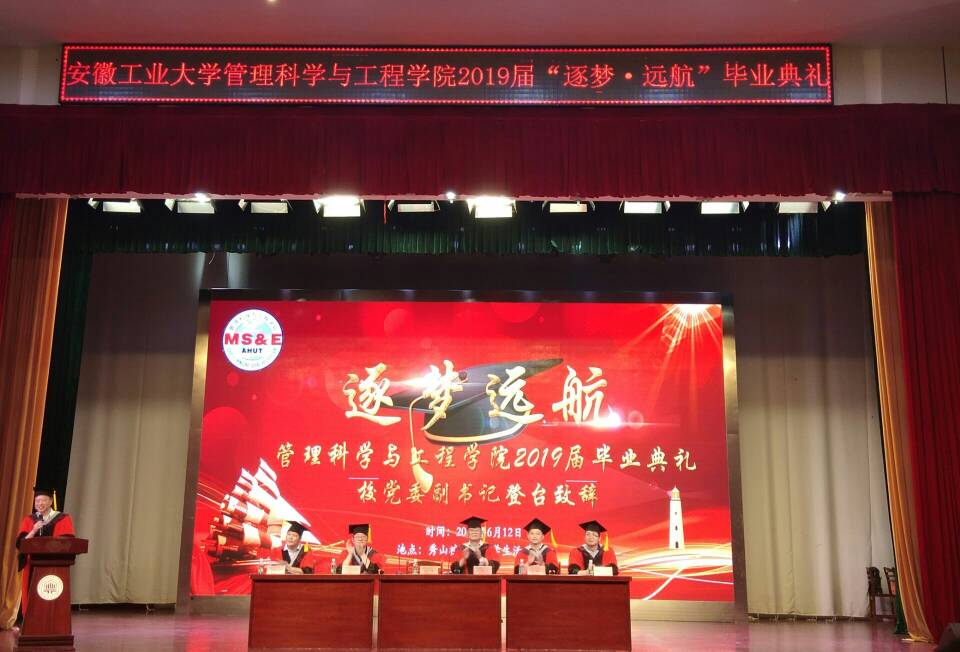 党委书记方承武宣读了学院获得2019年安徽省普通高等学校品学兼优毕业生、校优秀毕业生、校友联络员的表彰决定。院长岳朝龙希望同学们常怀感恩之心,多学习,多提升,做“雄关漫道真如铁,而今迈步从头越”的真心英雄。学院教师代表焦薇为毕业生们送上了祝福。毕业生代表郝宾杰向母校的悉心培养表达了感谢。