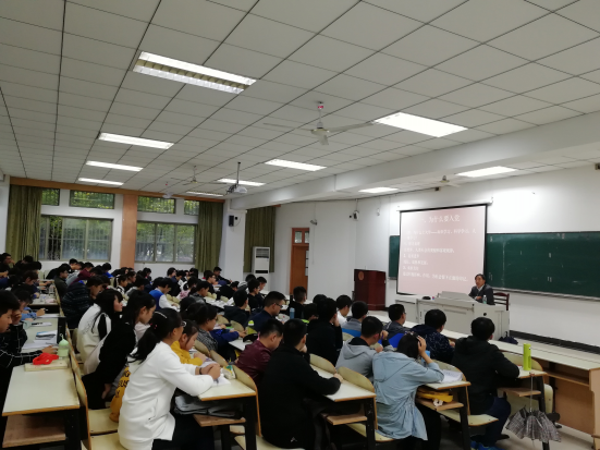 10月16日下午,H漫 在本部教三南103开展入党启蒙教育讲座,关工委副主任、关工委党建组、报告团负责人宋洪生主讲,H漫 全体新生到场。