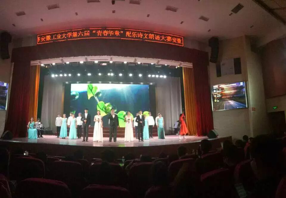 H漫 学生诗歌朗诵主题为《中国梦,七彩梦》。舞台上,息161班赵双双、王慧敏、流161班赵刘阳、张鑫等同学的朗诵激情昂扬,价161班雍雯菲等同学出色的二胡伴奏,工163杜婵同学优美的伴舞,让朗诵舞台设计精妙,表演形式独特。
