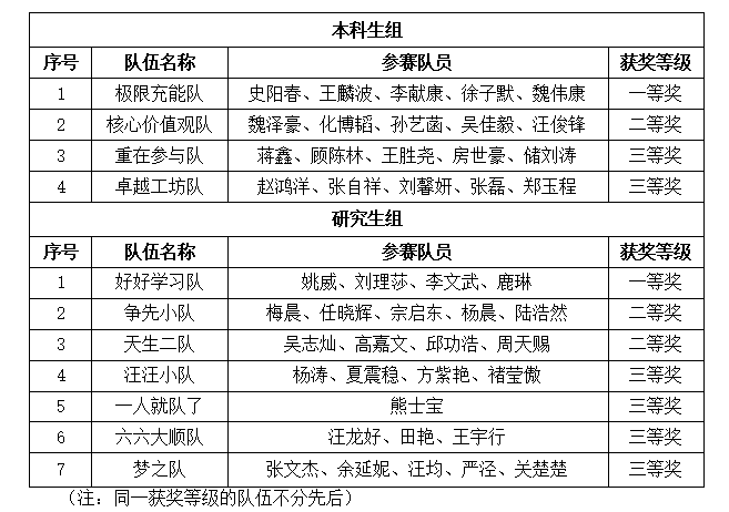 现将比赛结果予以公示,公示期为三天(11月16日-11月18日)。公示期间如有异议,请使用实名方式以书面或者电话形式向管理科学与工程学院反映。