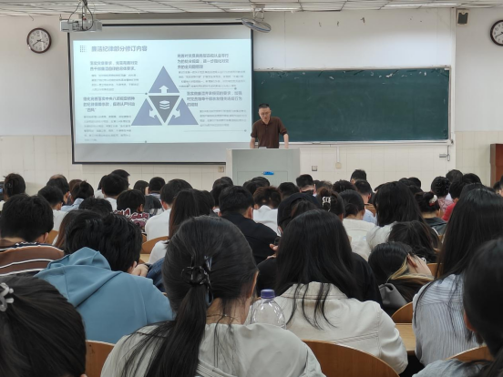 5月13日下午,H漫 党委书记王军在秀山校区东教一阶201教室为全院教师党员、学生党员上党纪学习教育专题党课。